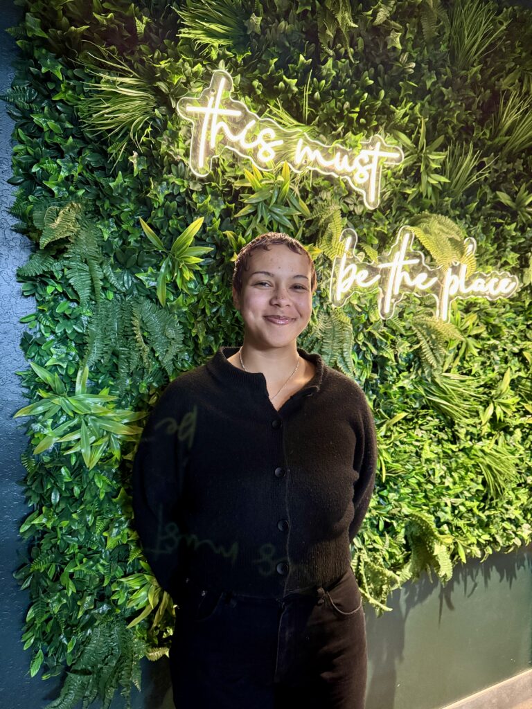 Her go-to vibe-setter on shift is “Stateside” by PinkPantheress and Zara Larsson. Fun fact: she designs flyers and cover art for local bands around the Bay—creative through and through.